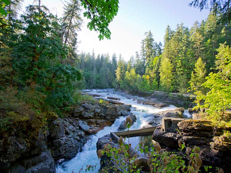 Hike, bike or birdwatch along the trails at Stamp River Provincial Park, the Alberni Inlet Trail or the Log Train Trail along an abandoned train track into the Alberni Valley.
